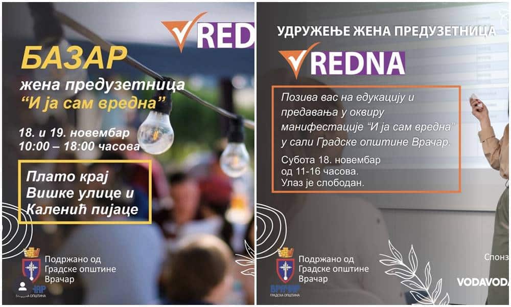 „I ja sam vredna“, naziv je manifestacije koja će u organizaciji Udruženja žena preduzetnica „Vredna“ i uz podršku Opštine Vračar, biti održana 18. i 19. novembra od 10 do 18 časova, na platou pomenute Gradske opštine.